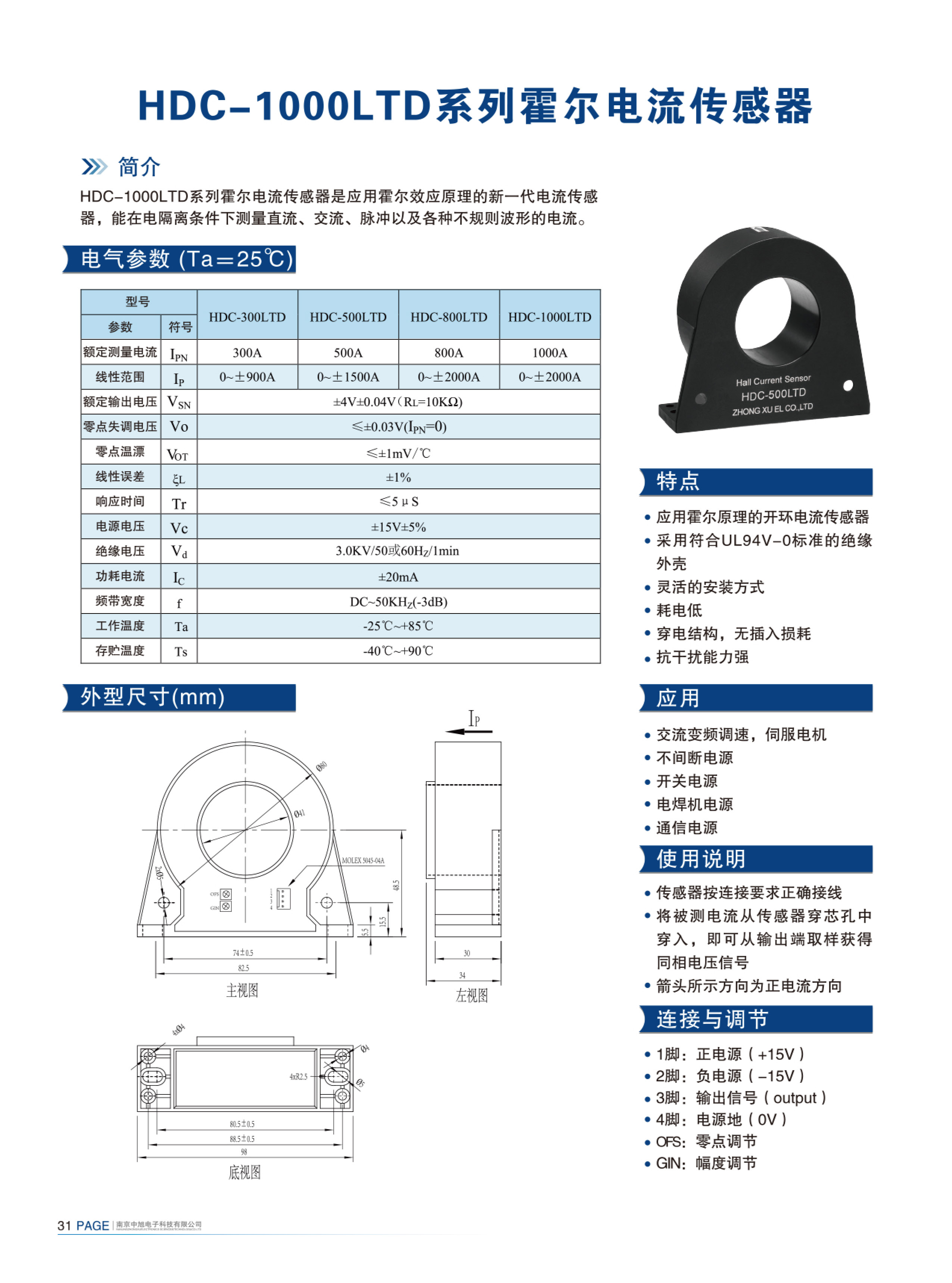 HDC-1000LTD series Hall current sensor is a new generation of current sensor using the principle of Hall effect. It can measure currents of DC, AC, pulse and various irregular waveform under electrical isolation.
