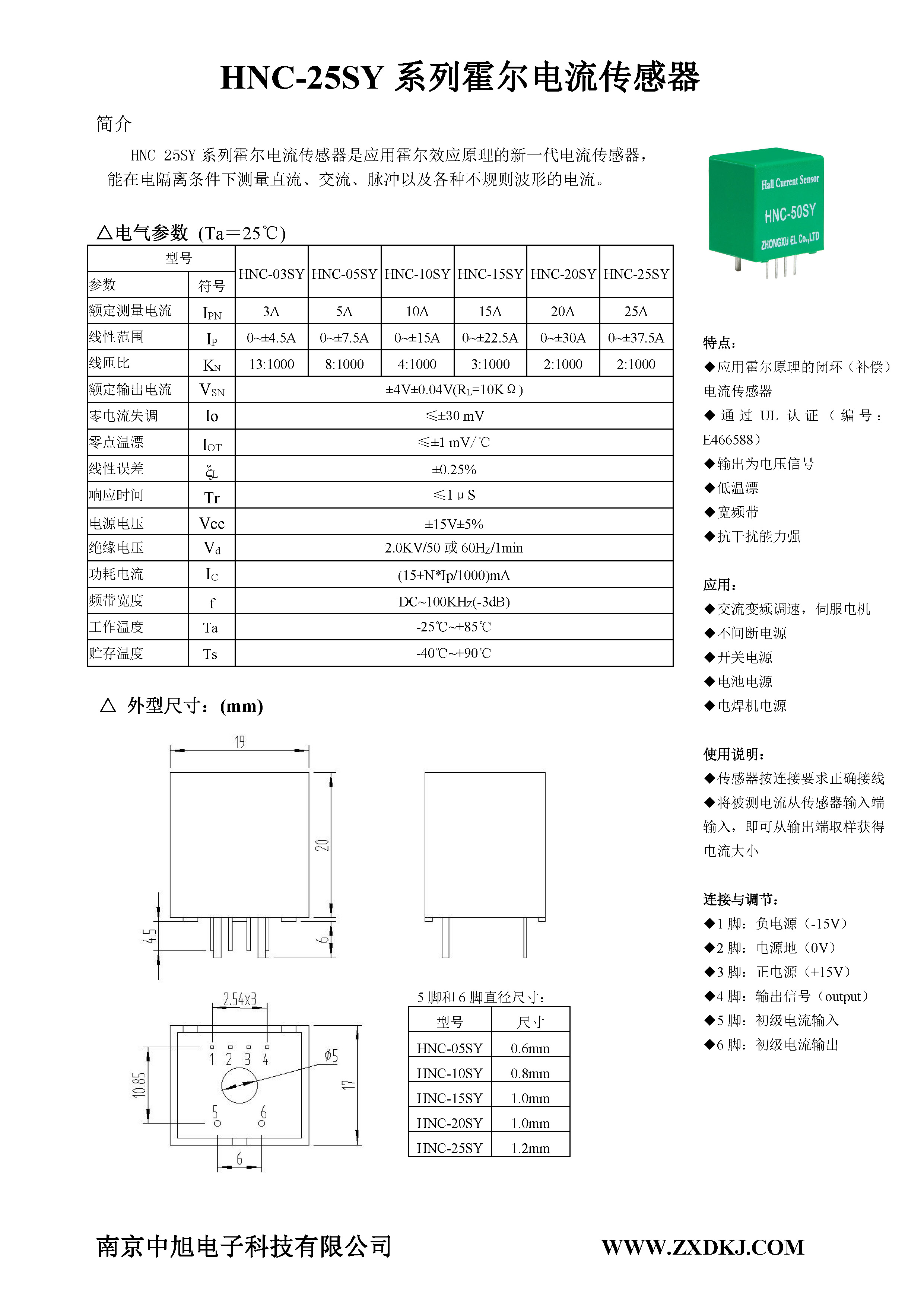 HNC-25SY series Hall current sensor is a new generation of current sensor using the principle of Hall effect. It can measure currents of DC, AC, pulse and various irregular waveform under electrical isolation.